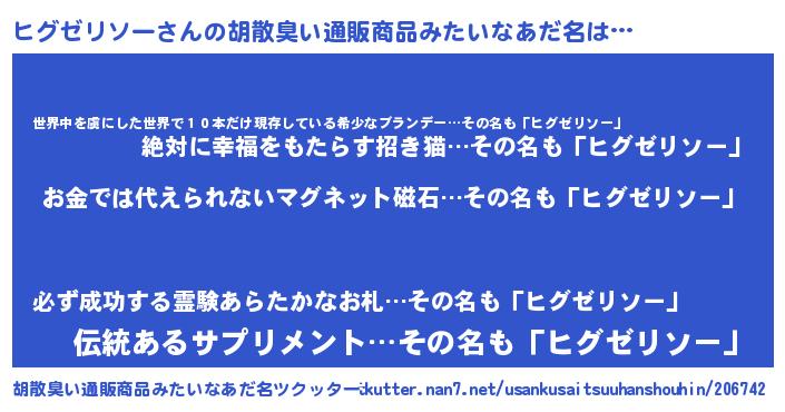 | ヒーロー風カッコイイあだ名 | 『慈愛の使者ヒグゼリソー』 |