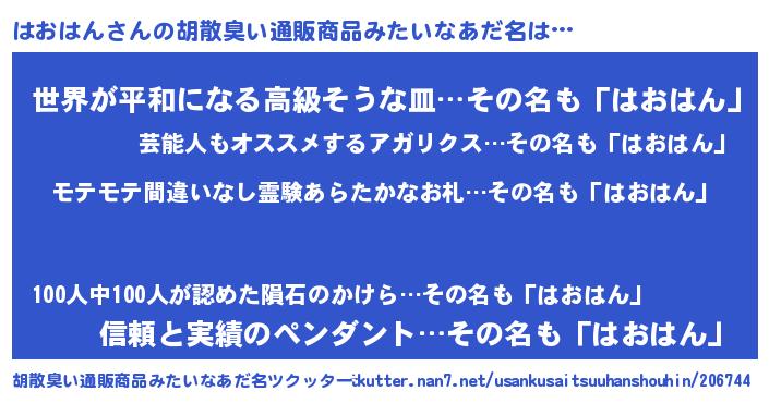 | ヘコむあだ名 | 『はおっふぃ~』『つくし』 |
