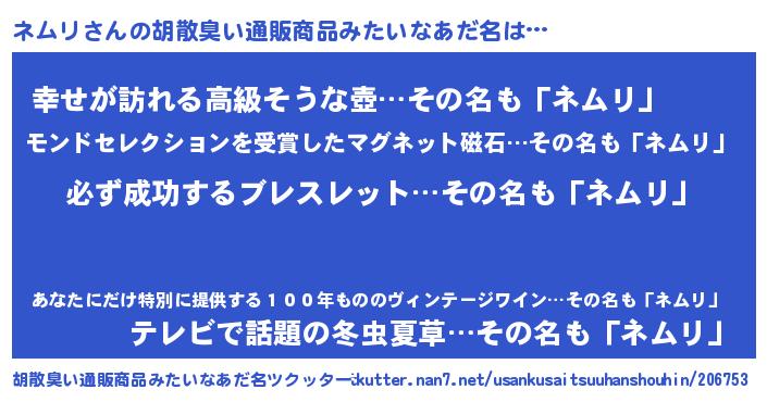 | ヒーロー風カッコイイあだ名 | 『スーパーネムリ』『ウルトラネムリマン』 |