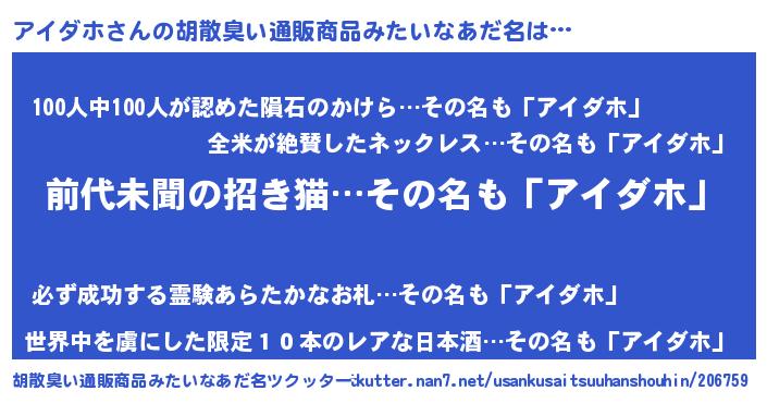 | ヘコむあだ名 | 『アイダホ(小並感)』『アイを』 |