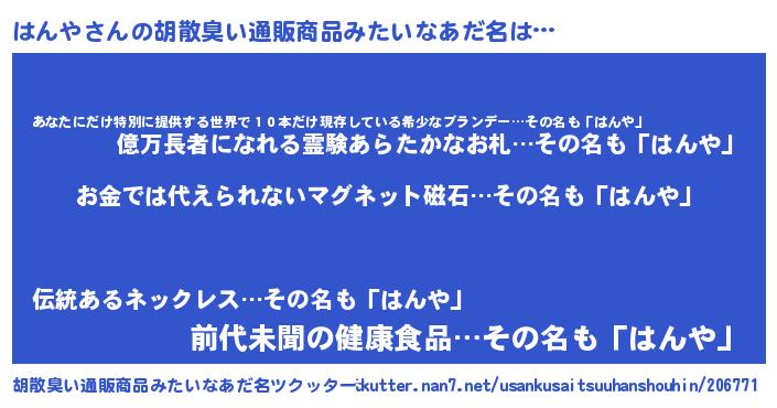 | ヘコむあだ名 | 『はんや(小並感)』『はんもー』 |
