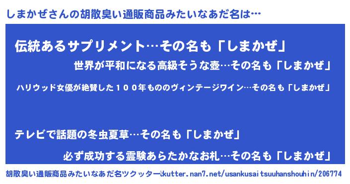 | 意味不明あだ名 | 『しいたけ科しまかぜ属』 |