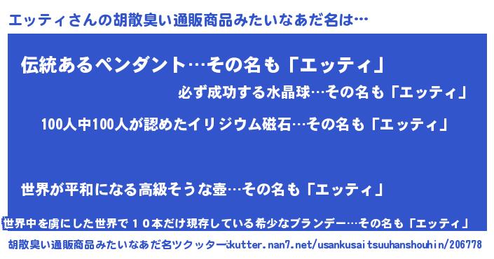 | ヒーロー風カッコイイあだ名 | 『正義の使者エッティ』『銀牙騎士エッ』 |