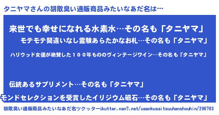 | 意味不明あだ名 | 『住所不定無職タニヤマ(1歳)』 |