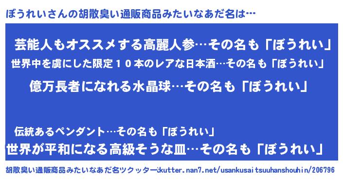 | ヒーロー風カッコイイあだ名 | 『スーパーボウレイ』『究極戦士ボウレイ』 |