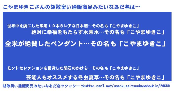 こやまゆきこさんの胡散臭い通販商品みたいなあだ名をツクッター!