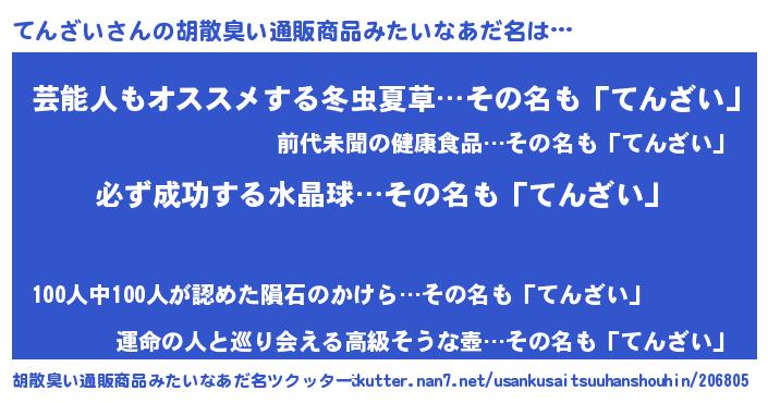 | 意味不明あだ名 | 『ペロリンてんざい』『自称てんざい』 |