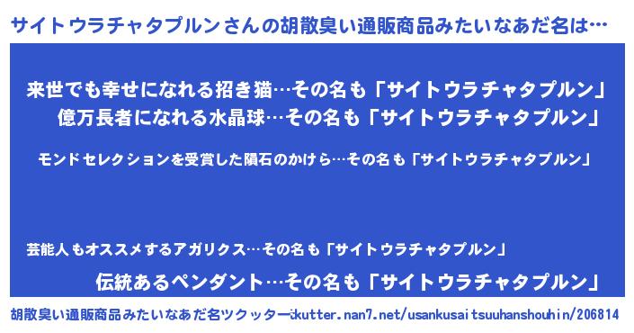 | 男性向けラノベタイトル風あだ名 | 『ノーゲーム・ノーサイトウラチャタプルン』 |
