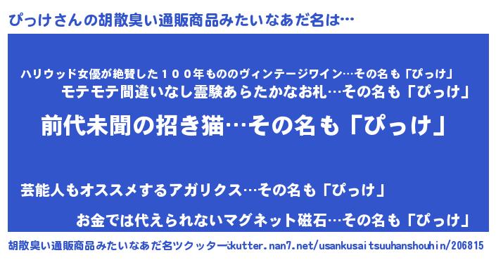 ヘコむあだ名 | 『ぴっけ(笑)』『ぴっにー』『豆乳』 |