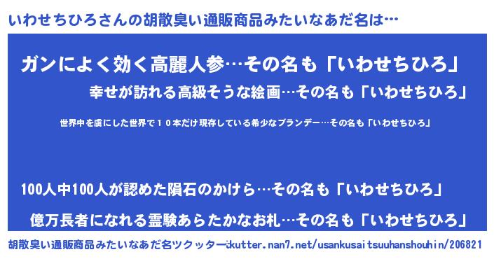 意味不明あだ名 | 『住所不定無職いわせちひろ(74歳)』 |