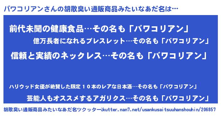 女子向けラノベタイトル風あだ名 | 『バワコリアンは平凡を望む』 |