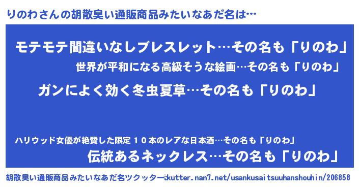 ヘコむあだ名 | 『りのっふぃ~』『りの太郎』 |