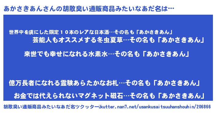 ヘコむあだ名 | 『あかさきあん(震え声)』『あかふぇ~』 |