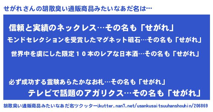 ヘコむあだ名 | 『せがっ子』『せがにゅー』『豆乳』 |