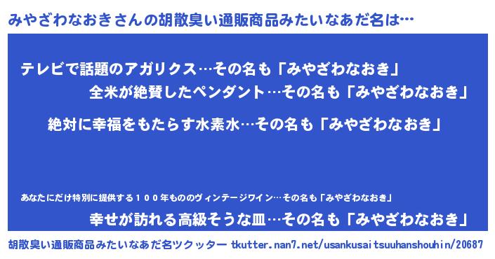 | ヘコむあだ名 | 『みやざわなおき(震え声)』『豆乳』 |