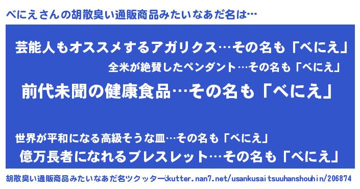 | ヘコむあだ名 | 『べにえ(爆)』『べににゅー』 |