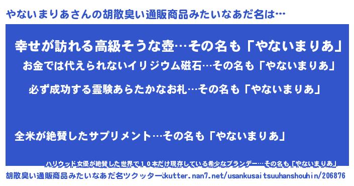 ヘコむあだ名 | 『やなっふぃ~』『なまこ酢』 |