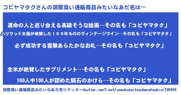 | ヒーロー風カッコイイあだ名 | 『スーパーコビヤマタク』『仮面コビダー』 |