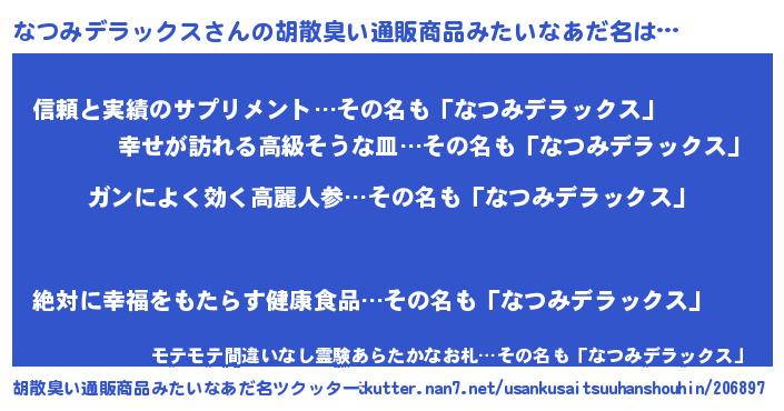 | 女子向けラノベタイトル風あだ名 | 『なつみデラックスなんてお断りですっ。』 |
