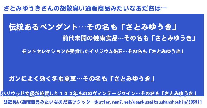 | ヘコむあだ名 | 『さと太郎』『さとみゆうき(震え声)』 |