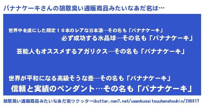 | 男性向けラノベタイトル風あだ名 | 『Re:バナナケーキから始める異世界生活』 |