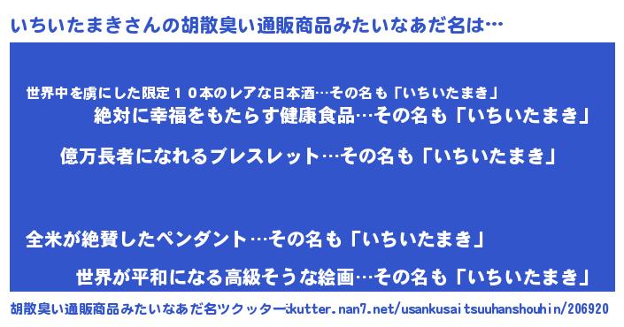 | 男性向けラノベタイトル風あだ名 | 『いちいたまきに滅ぼされるだけの簡単なお仕事です』 |