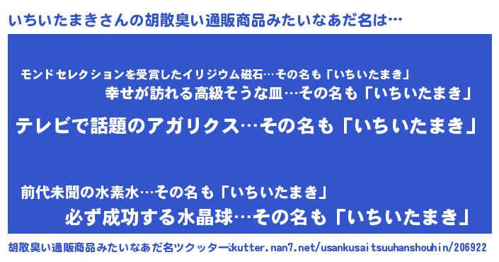 | 恥ずかしいあだ名 | 『イチイタマキデラックス』『いちっちょ』 |