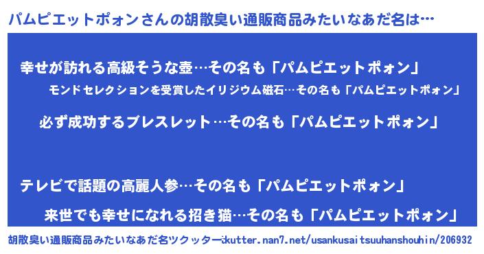 | 男性向けラノベタイトル風あだ名 | 『パムピエットポォンの憂鬱』 |
