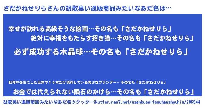 女子向けラノベタイトル風あだ名 | 『(仮)さだかねせりらのやんごとなき事情』 |