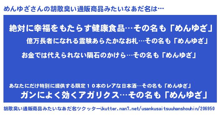ヘコむあだ名 | 『めんゆざ(遠い目)』『めんにゅー』 |