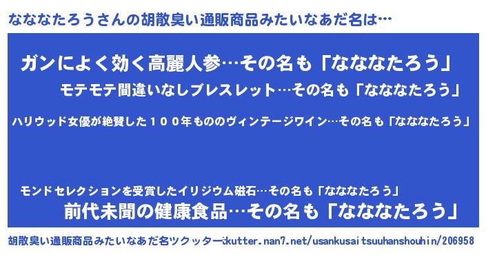 意味不明あだ名 | 『住所不定無職なななたろう(12歳)』 |