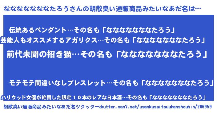 伝説のあだ名 | 『古文書に記された吟遊詩人なななななななたろう』 |