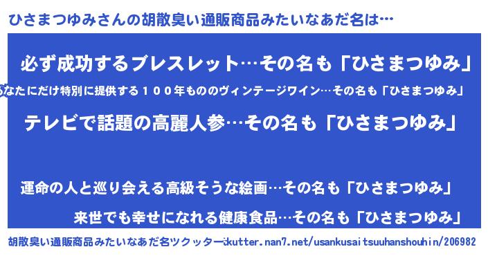 | 意味不明あだ名 | 『自称ひさまつゆみ』 |
