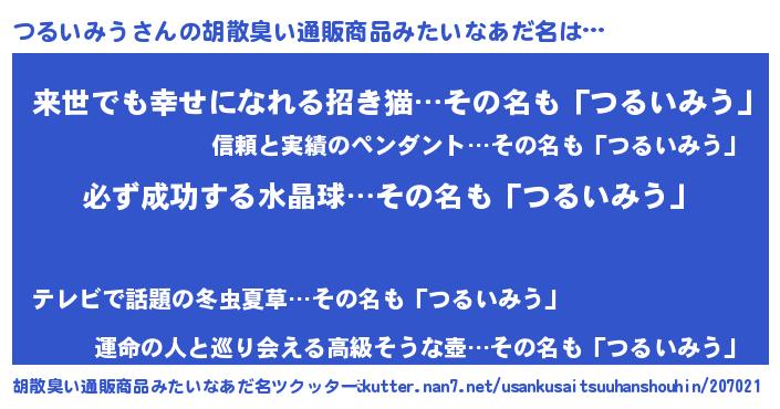 ヒーロー風カッコイイあだ名 | 『スーパーツルイミウ』『ネオツルイミウ』 |