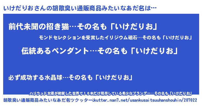 ヘコむあだ名 | 『いけっちょ』『いけだりお(小並感)』 |