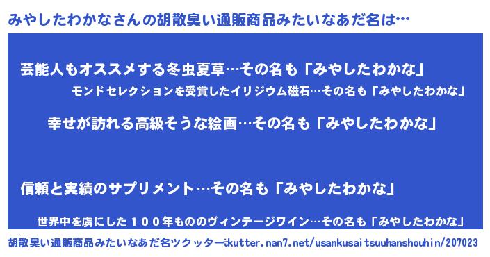 欧米人風あだ名 | 『みやしたわかなクリステル』 |