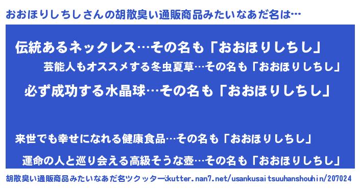 男性向けラノベタイトル風あだ名 | 『おおほりしちしの憂鬱』 |