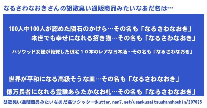 意味不明あだ名 | 『住所不定無職なるさわなおき(47歳)』 |