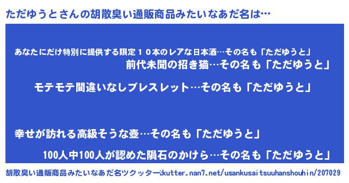 ヘコむあだ名 | 『ただにー』『ただゆうと(小並感)』 |