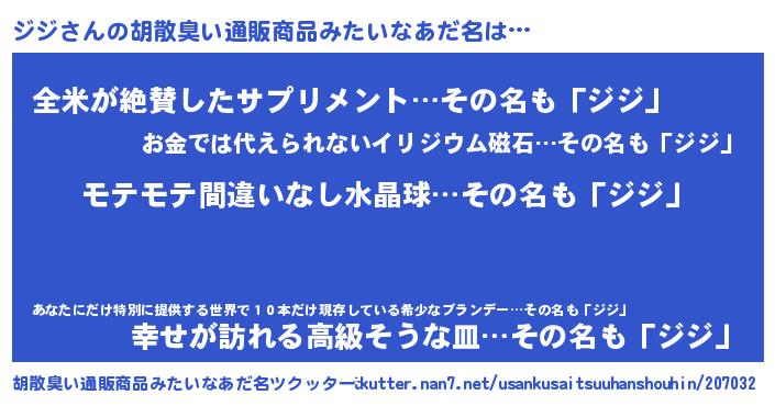 自動車の名前っぽいあだ名 | 『ジジティマ』『ジント』『ジスラー』 |
