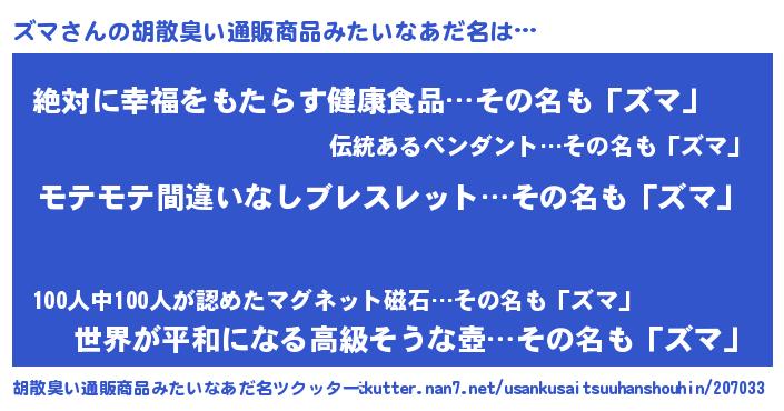 ヘコむあだ名 | 『ズマふぇ~』『ズマ(笑)』『ズマお』 |