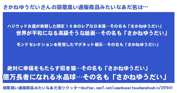 ヒーロー風カッコイイあだ名 | 『慈愛の使者さかねゆうだい』 |