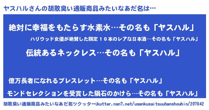 ヘコむあだ名 | 『ヤスっ子』『ヤスハル(小並感)』 |
