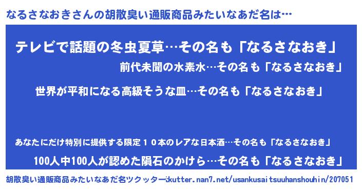 ファンタジー風あだ名 | 『エターナルナルサナオキー』 |