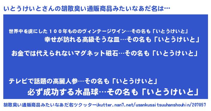 ヘコむあだ名 | 『いとにー』『つくし』『いと太郎』 |
