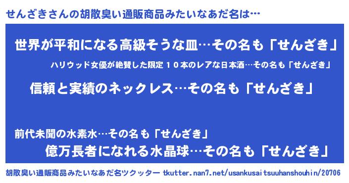 | 意味不明あだ名 | 『とにかく怪しいせんざき』 |