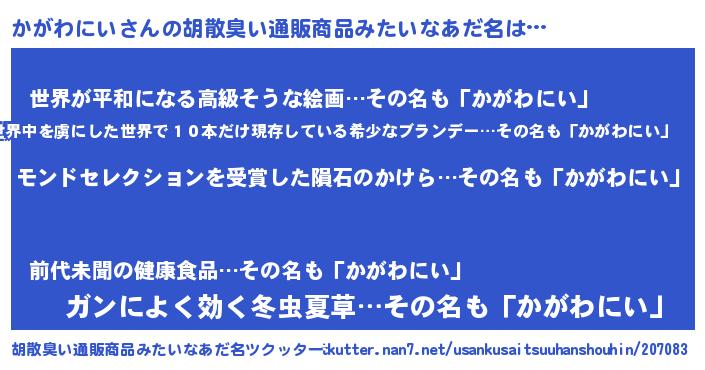 | 肩書あだ名 | 『かがわにい学部長』『かがわにい大統領』 |