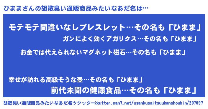 | 欧米人風あだ名 | 『アンジェラ・ひまま』『ダニエルひまま』 |