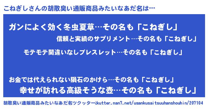 男性向けラノベタイトル風あだ名 | 『転生したらこねぎしだった件』 |