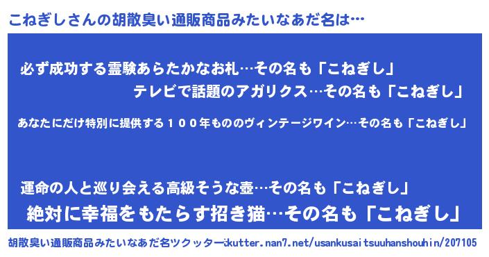 意味不明あだ名 | 『住所不定無職こねぎし(2歳)』 |